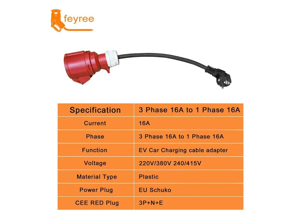 Pokud použijete tento adaptér, nabíjecí kapacita se sníží z 3 fázového 16A 11KW na 1fázový 16A 3,5KW.