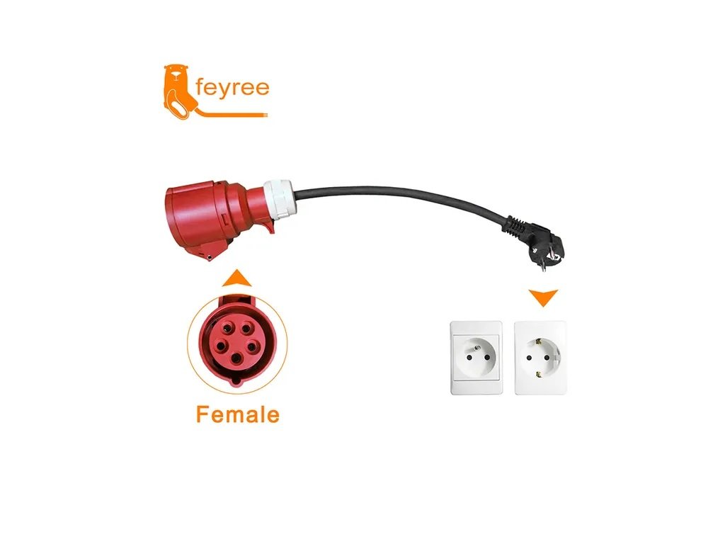 Adapter CEE samice na EU zástrčku. Vhodný pro přenosné nabíječky do 11 kW.